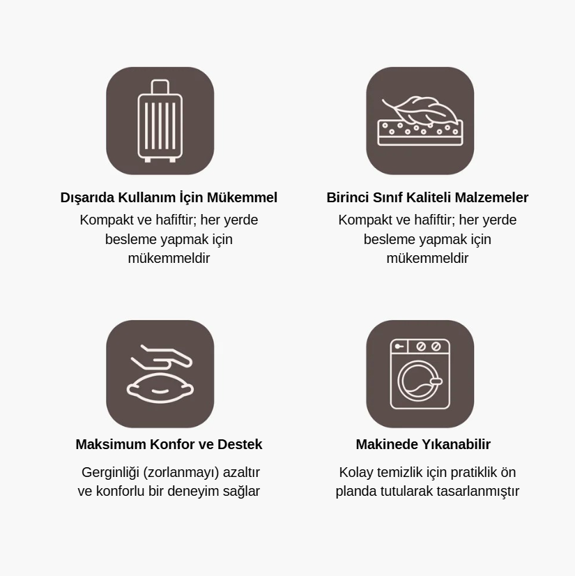 Bebek beslemek; kol yorgunluğuna, duruş bozukluğuna, omuz ve boyun bölgesinde gerginliğe neden olur. Zamanla bu durum konforsuzluğa, bebeğin memeyi yanlış kavramasına, hem ebeveyn hem de bebek için sinir bozucu bir deneyime yol açar.